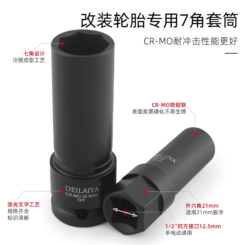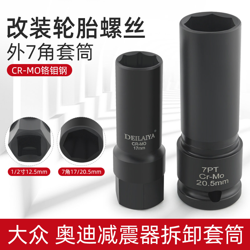 汽车改装 轮毂专用外七角防盗钥匙螺丝套筒17mm超薄7角套筒头1