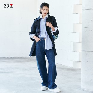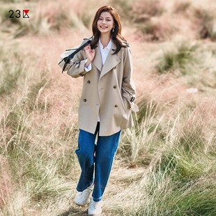 棉混纺双排扣中长风衣休闲外套商场同款 23区日系秋季 通勤宽松版