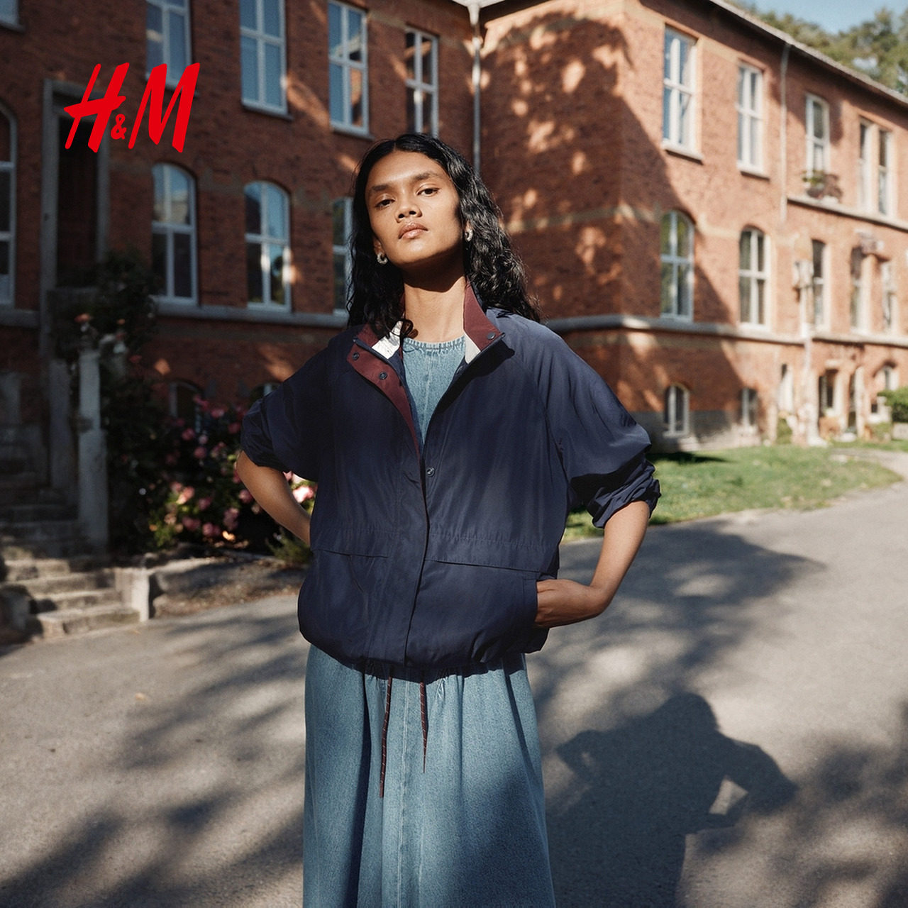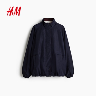 撞色夹克防风立领外套1294302 插肩袖 HM女装 风衣冬季