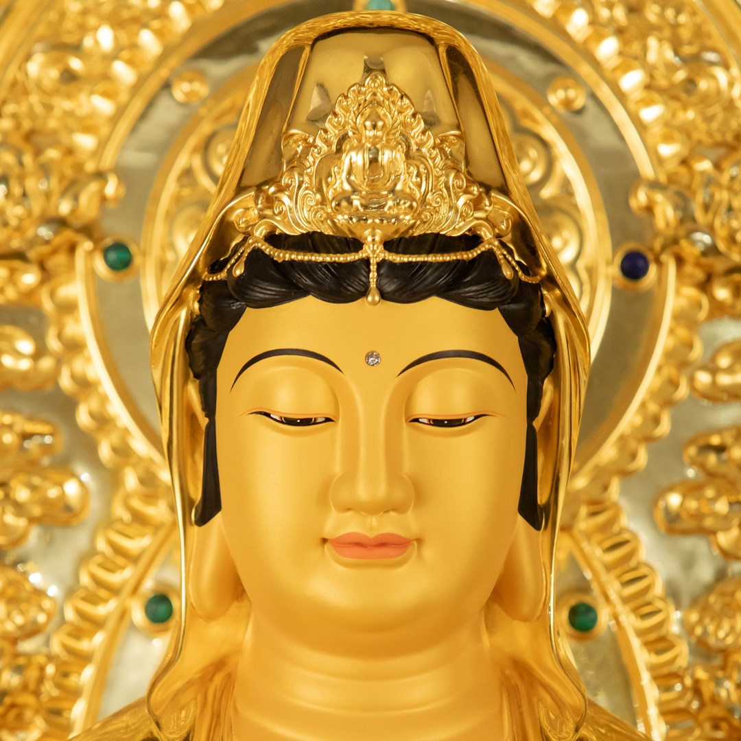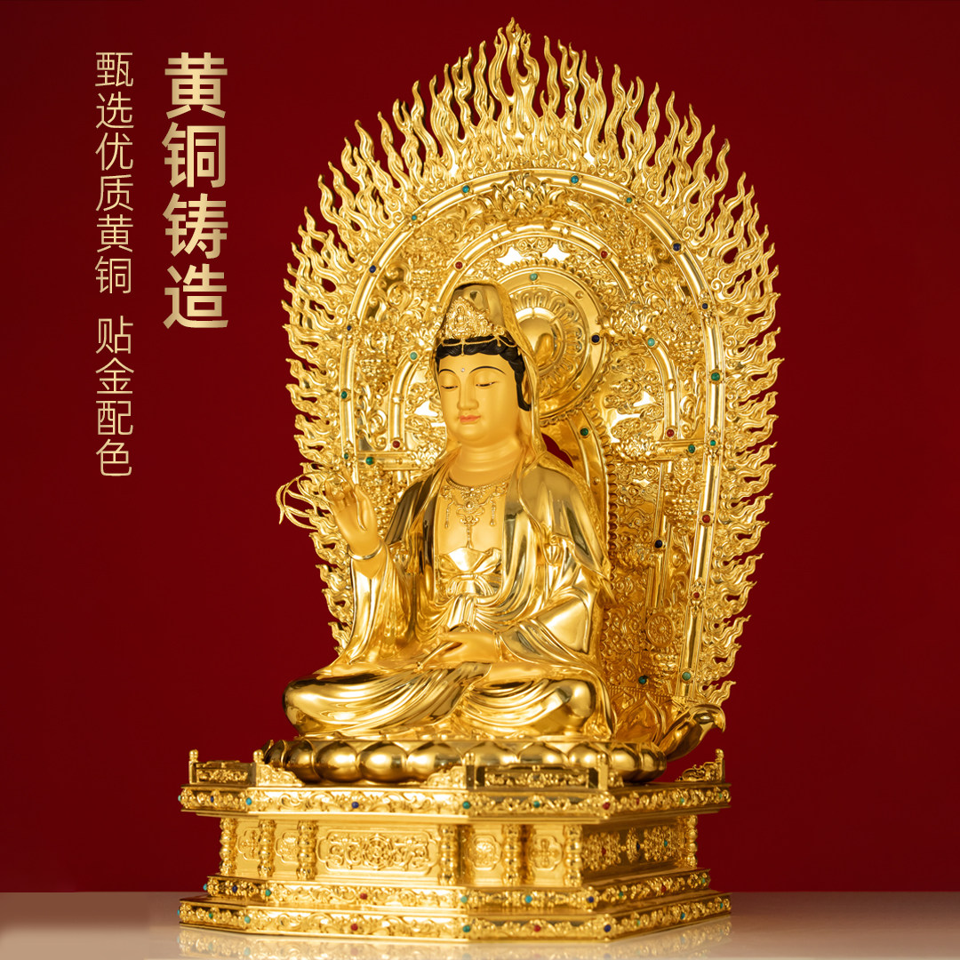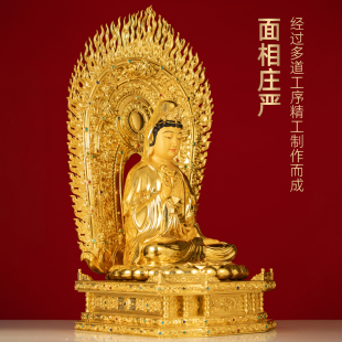 全铜贴金观世音菩萨佛像娑婆三圣台湾精品柳枝观音像家用佛堂供奉