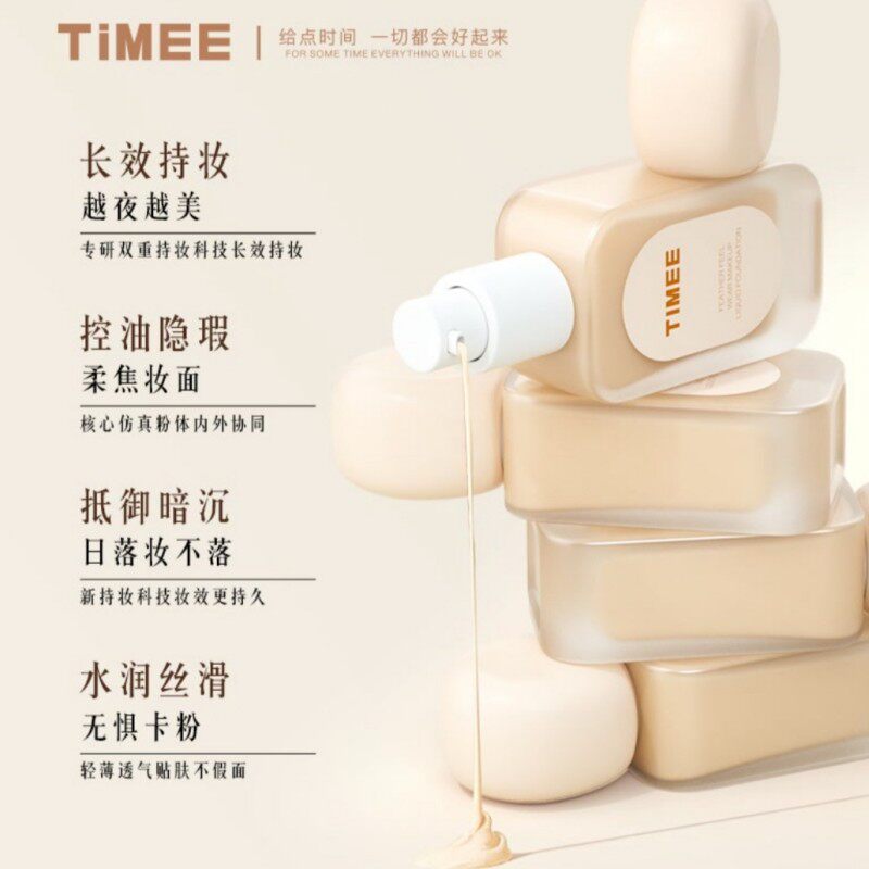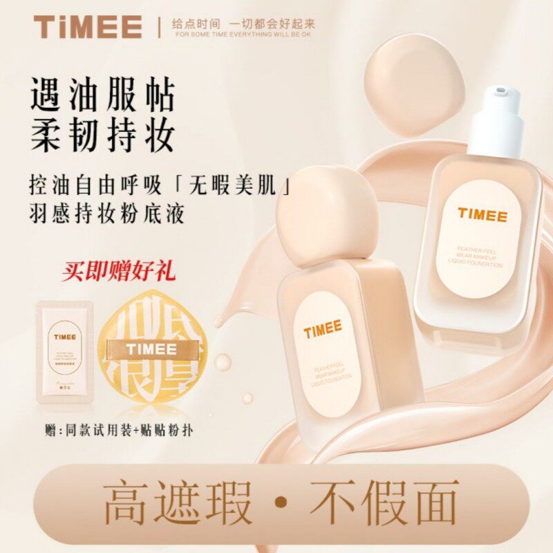 TIMEE羽感持妆粉底液滋润遮瑕细腻 控油不拔干学生党平价