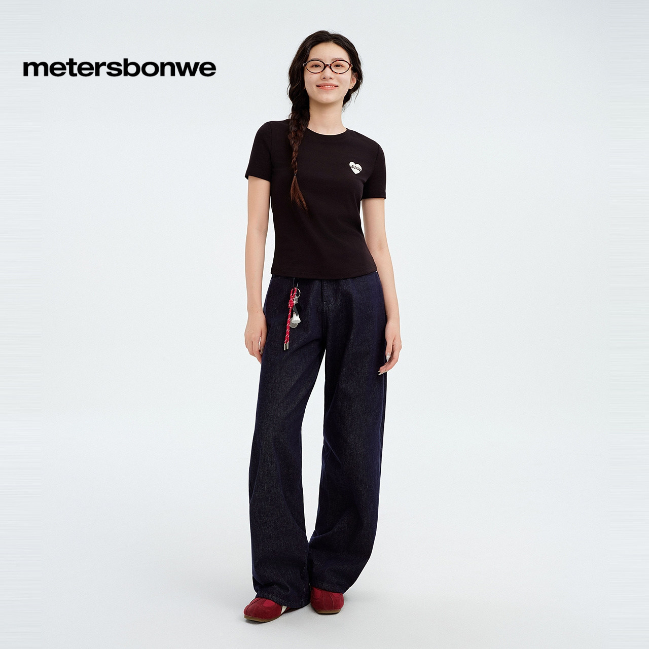 柔软小LOGO绣花短袖 休闲潮流修身 柔软T恤女 时尚 美特斯邦威春新款