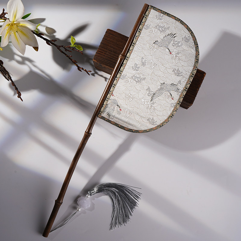 紫竹刀扇长柄异形汉服走秀拍照道具遮面仙鹤古风扇成人儿童刀把扇