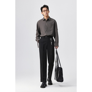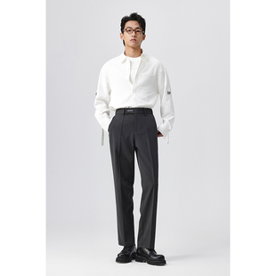 成熟稳重直筒宽松长裤 w2x2025春夏季 垂坠感休闲裤 褶皱西裤 子 美式