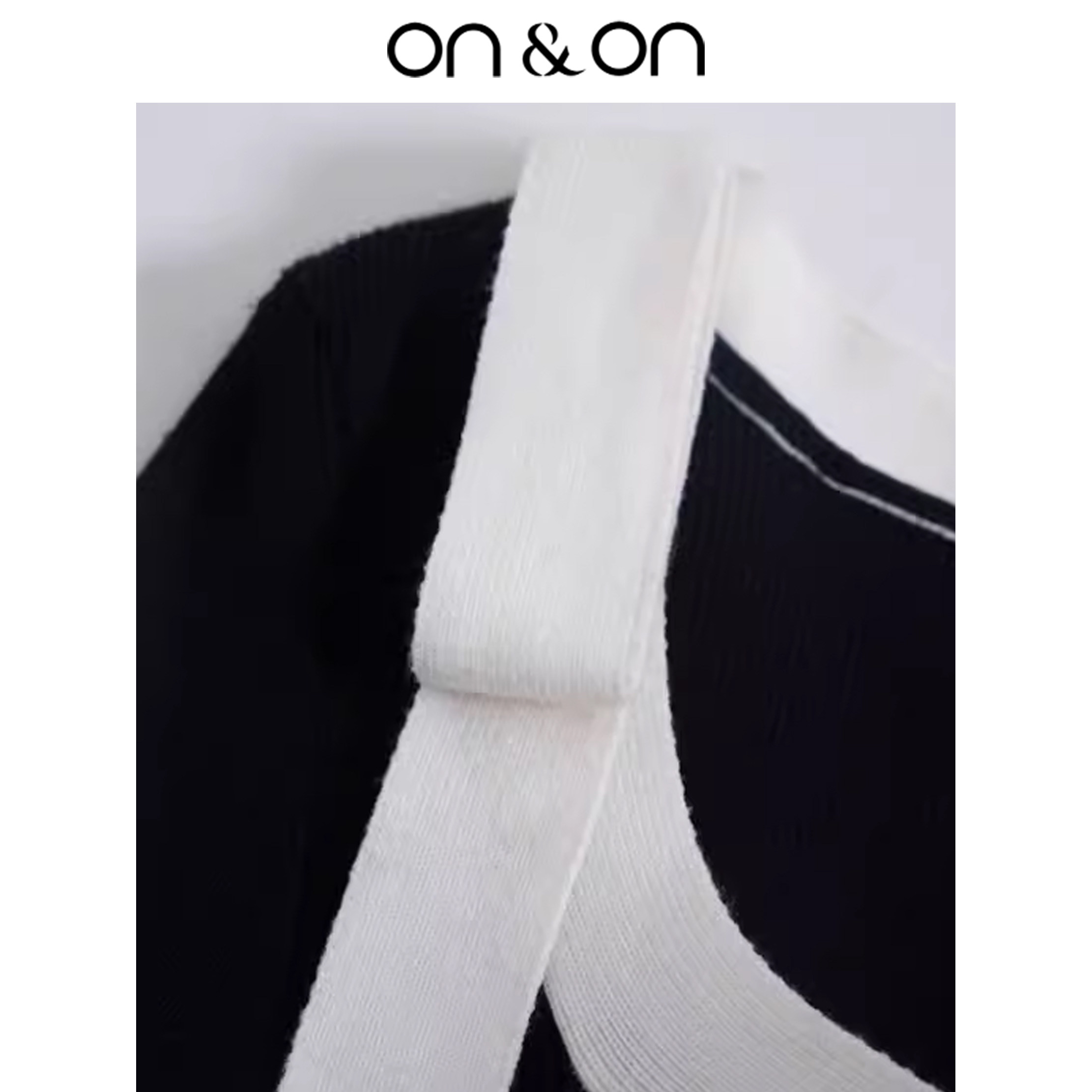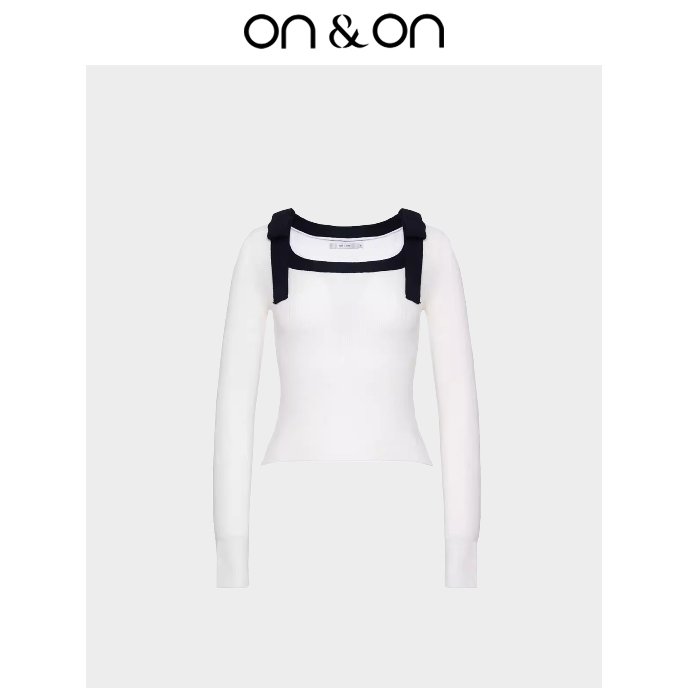 羊毛针织衫 ON&ON 长袖 简约复古方领撞色修身 女 安乃安2025冬季