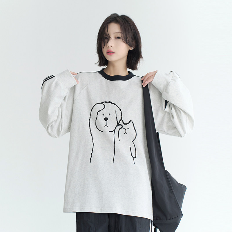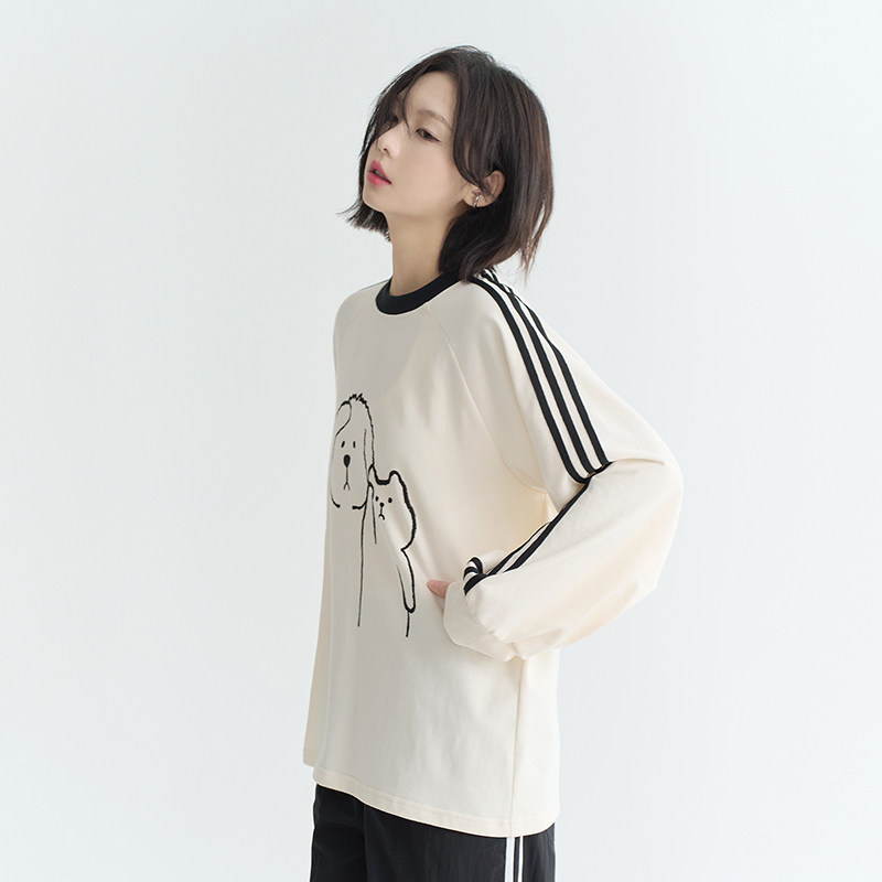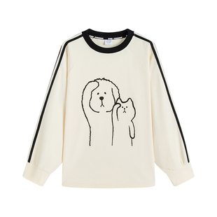 长袖 2025新款 T恤宽松上衣 小狗敬礼圆领卫衣女秋季 万有引力博物馆
