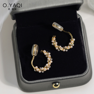 「奥利安娜」明星同款 简约珍珠耳环蚊香盘气质女耳夹精致耳饰耳钉
