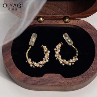 赵露思许妍同款 高品质轻奢珍珠无耳洞女蚊香盘耳夹耳饰钉复古高级