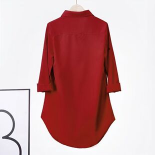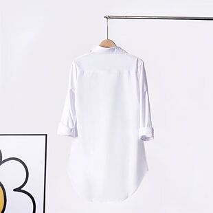 女休闲新款 白衬衫 长袖 宽松大码 韩版 上衣遮肚显瘦薄款 衬衣中长款