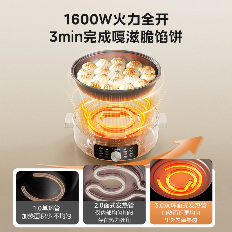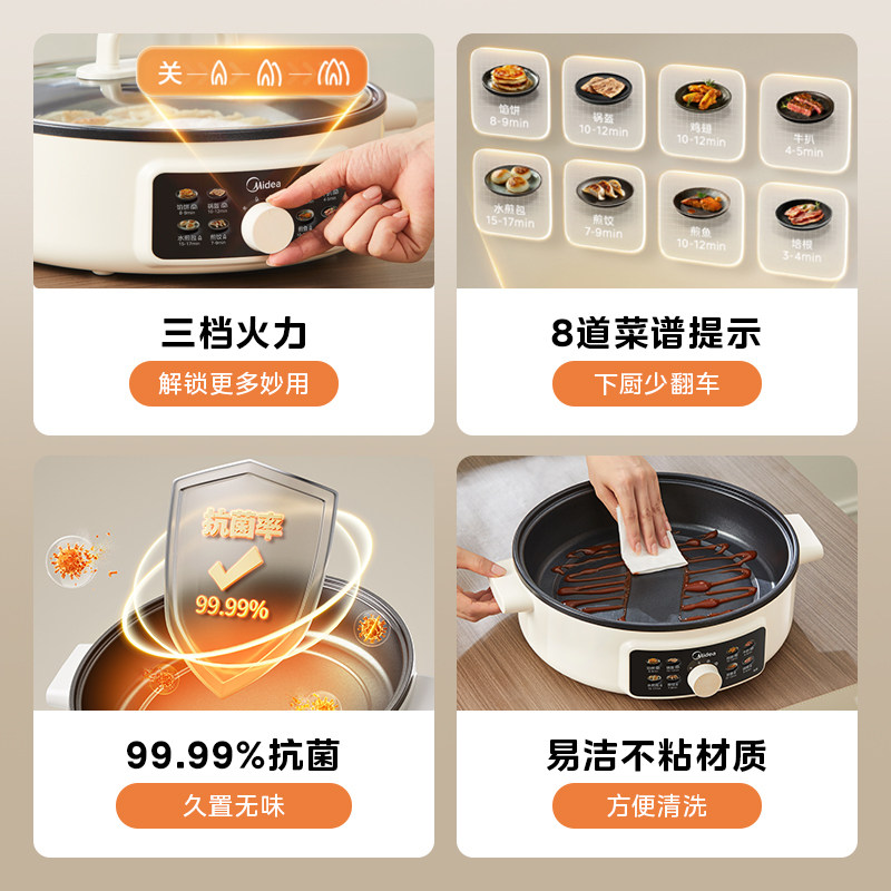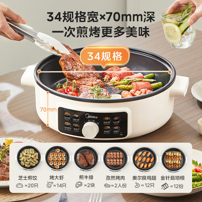 美 电饼铛家用加大加深煎饼薄饼机不粘烙饼锅深盘电煎锅电热火锅