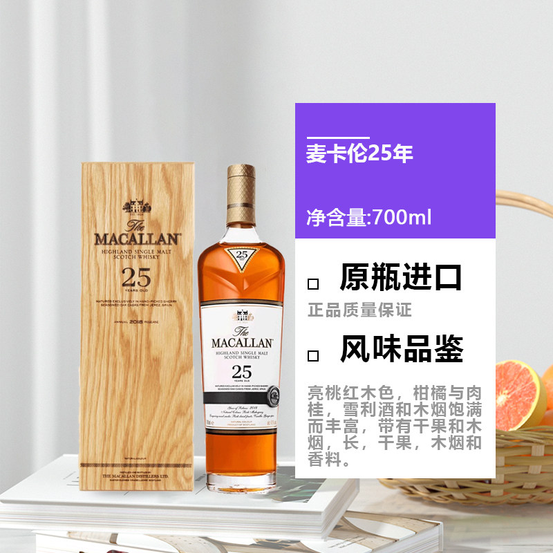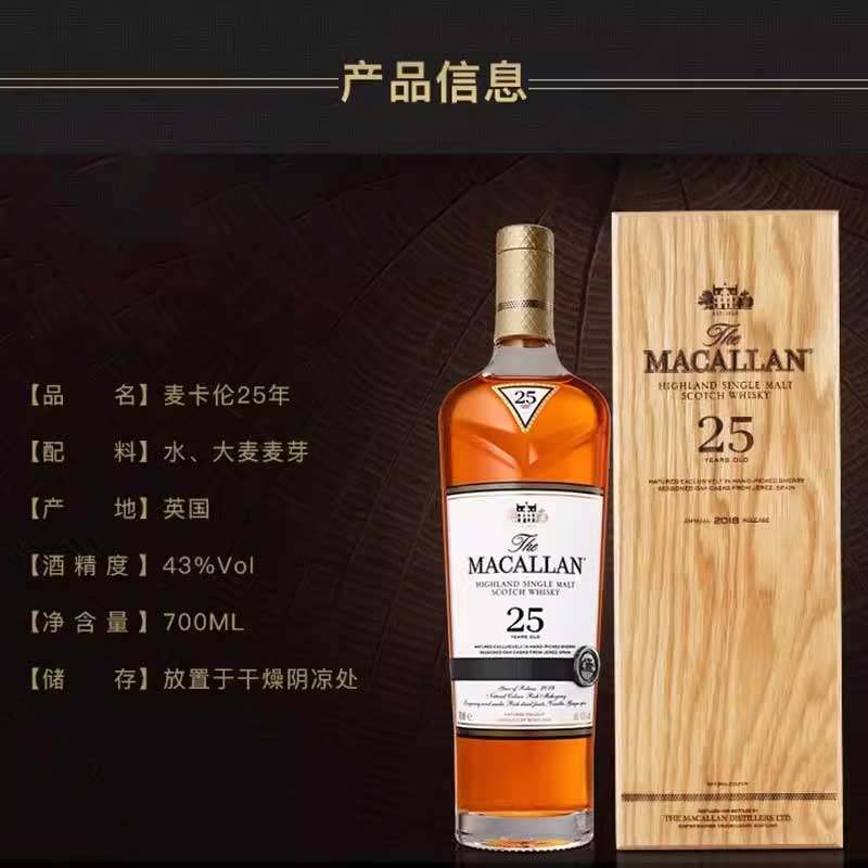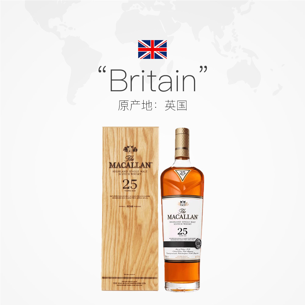 Macallan麦卡伦25年雪梨单桶苏格兰单一麦芽威士忌礼盒装 自营