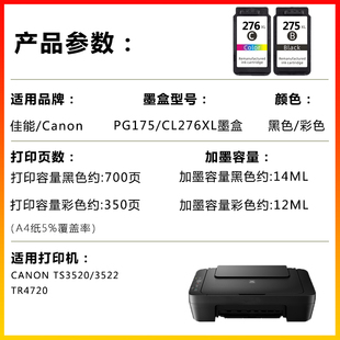 TR4720打印机墨水 522 适用佳能PG275 CL276XL黑色彩色墨盒TS3520