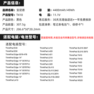 T410 E520 T510 联想E420 SL510 E40 SL410K E425笔记本电池 T420