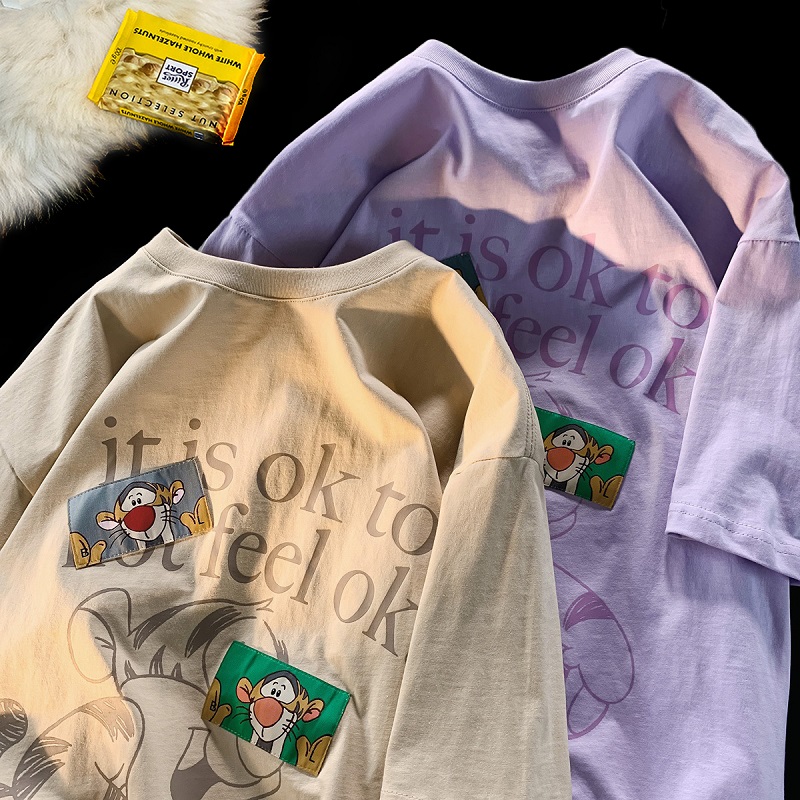 薄款 粉色2023夏季 大码 街头风卡通t恤女宽松短袖 纯棉上衣ins潮 美式