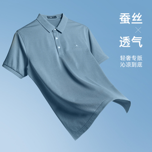 新款 骆驼男装 男桑蚕丝珠地2025夏季 polo衫 棉弹力翻领休闲t恤 短袖