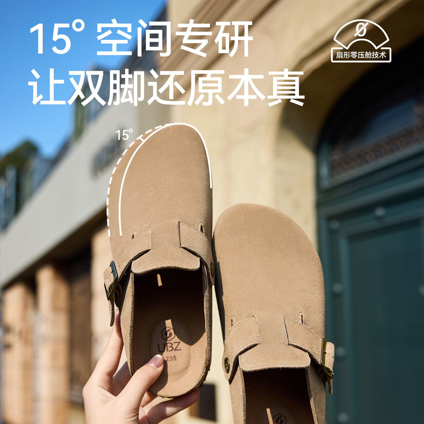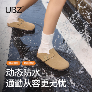 春男款 UBZ 女2026新款 防水厚底勃肯鞋 包头一脚蹬真皮博肯半拖 宽版
