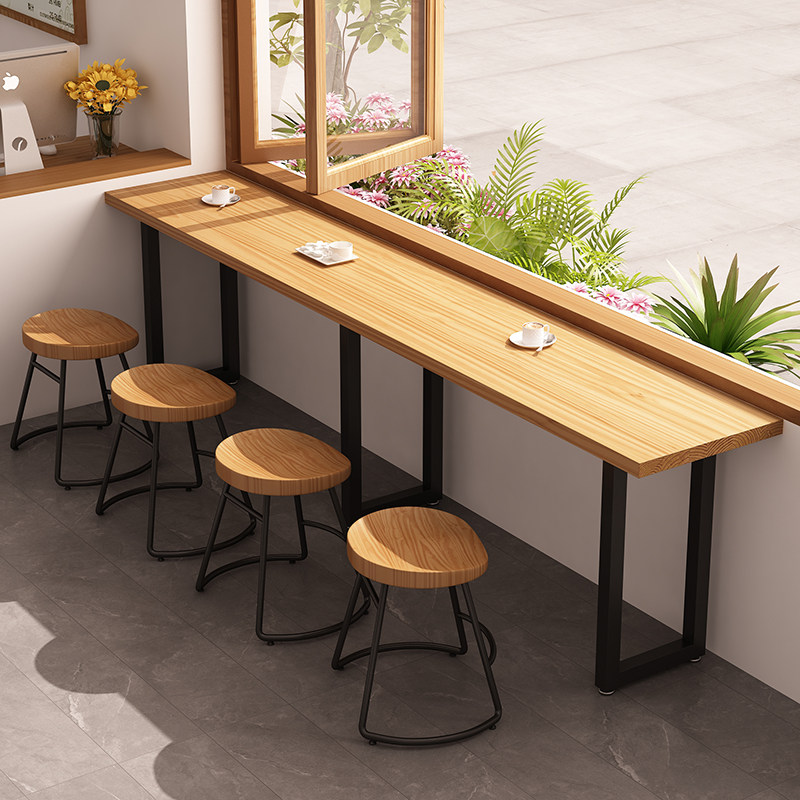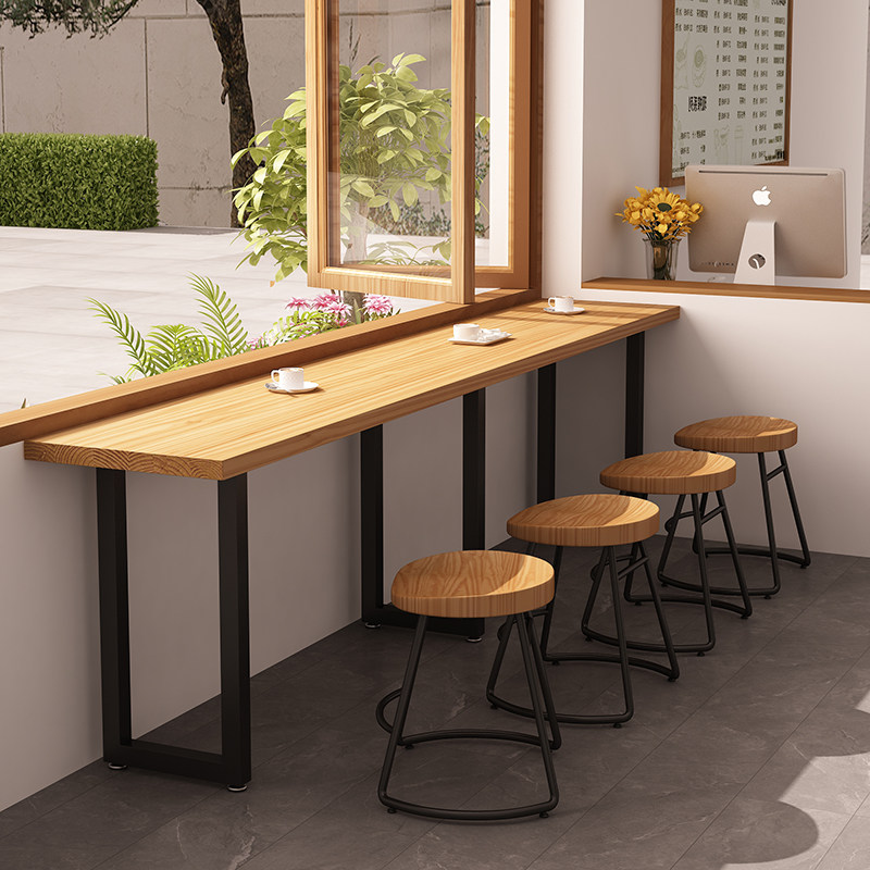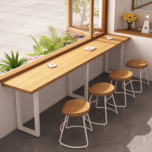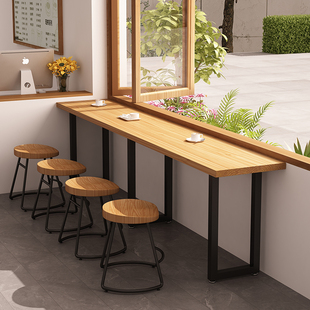吧台桌椅组合商用实木酒吧奶茶店长条高脚家用阳台窗边靠墙窄桌子