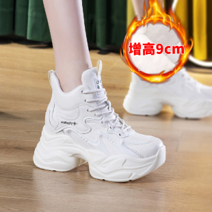 百搭女鞋 女9公分超火加绒保暖高帮鞋 潮 真皮内增高老爹鞋 秋冬新款