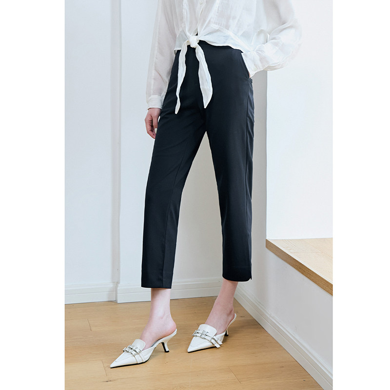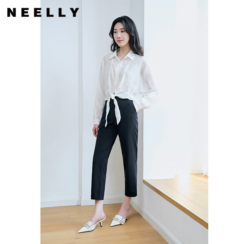 休闲裤 NEELLY纳俪商场同款 女职业通勤垂感直筒九分裤 裤 藏青色西装