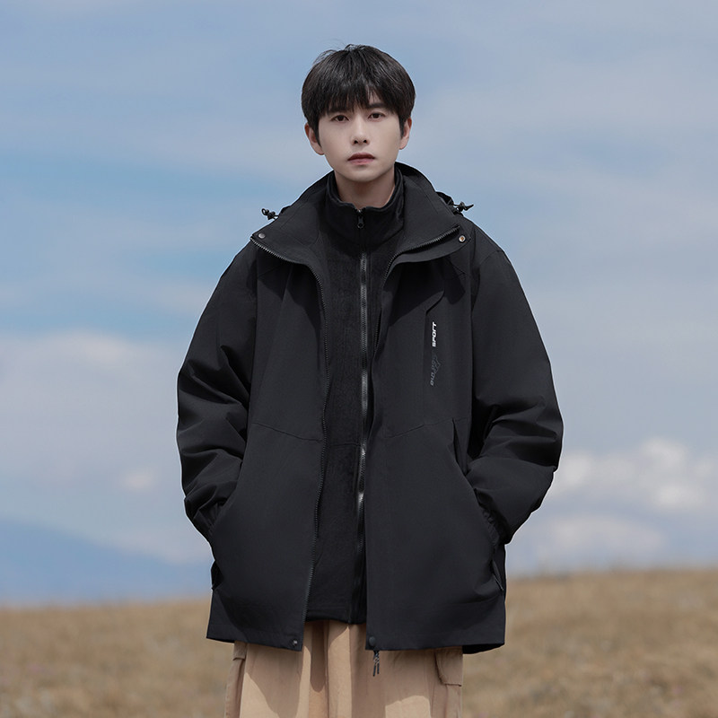 男生防风衣服 户外工装 回力三合一冲锋夹克外套男春秋冬季 2025新款