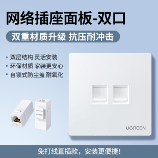 绿联双口网线面板网络插座六类千兆电脑插座免打线直插式 86型暗装