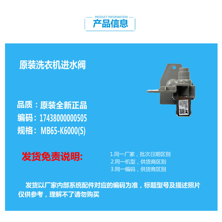 K6000QCSR 洗衣机配件进水电磁阀MB80 MB65 美 正品