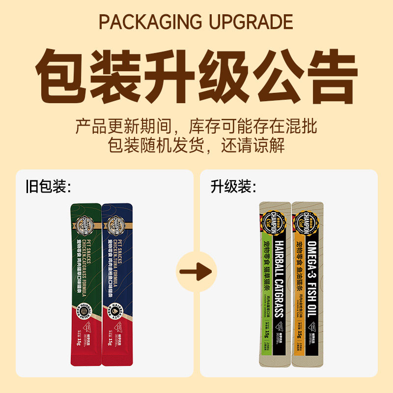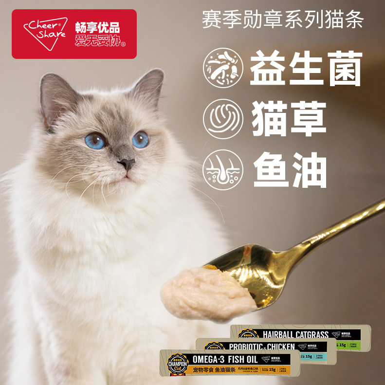 畅享优品赛季 勋章鱼油猫条零食猫咪成幼猫湿粮猫草猫条100支整箱