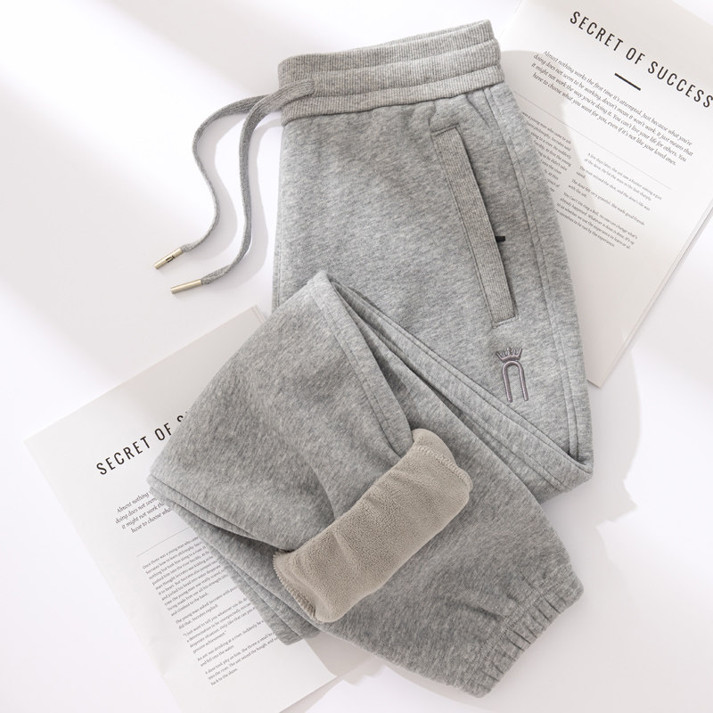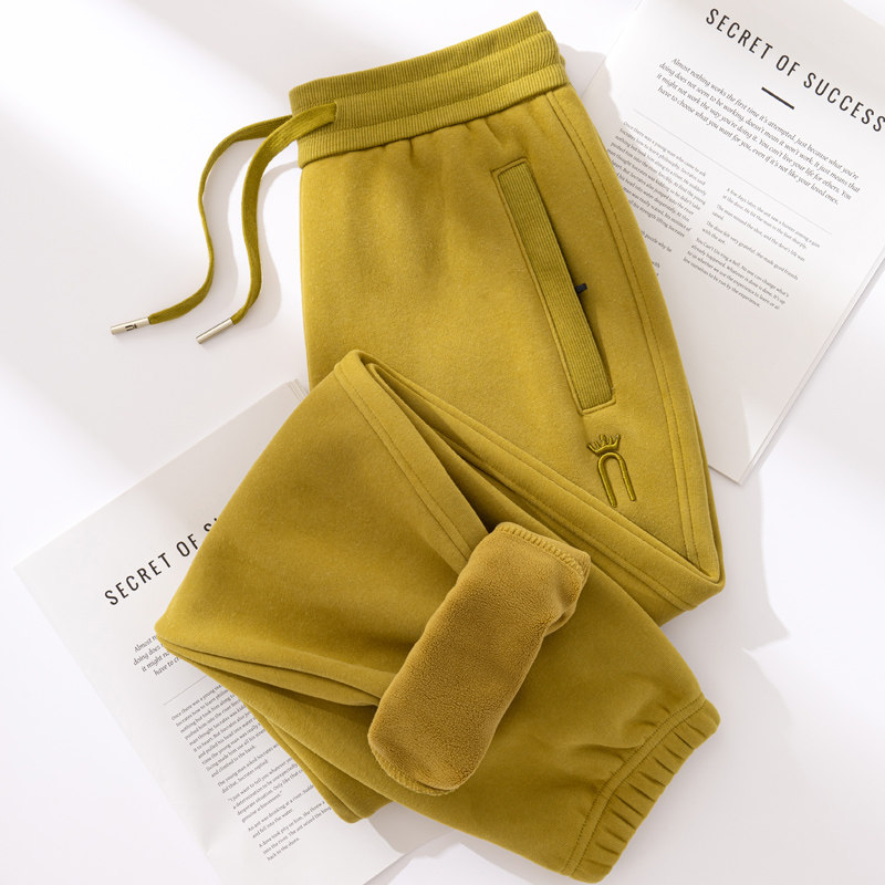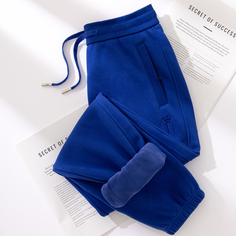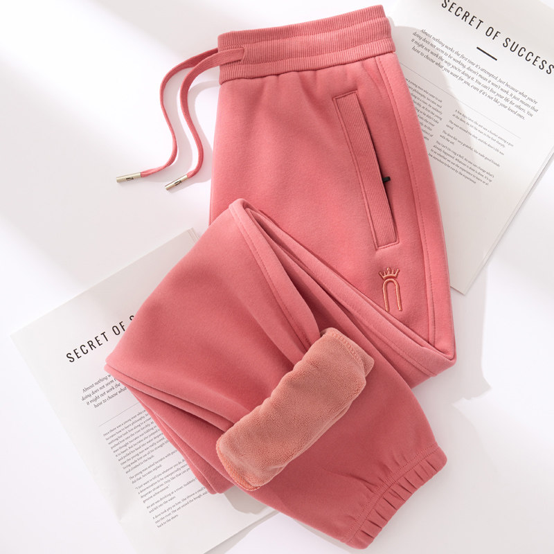 高腰休闲运动裤 女冬加绒束脚宽松春秋季 拉链口袋红色卫裤 高品质