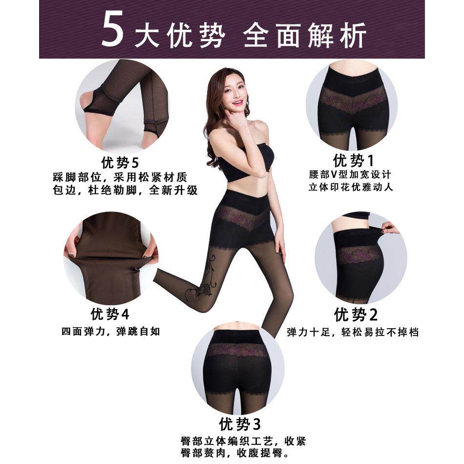 小网眼踩脚裤 双层加绒加厚印花大码 女外穿秋冬季 网纱假透肉打底裤