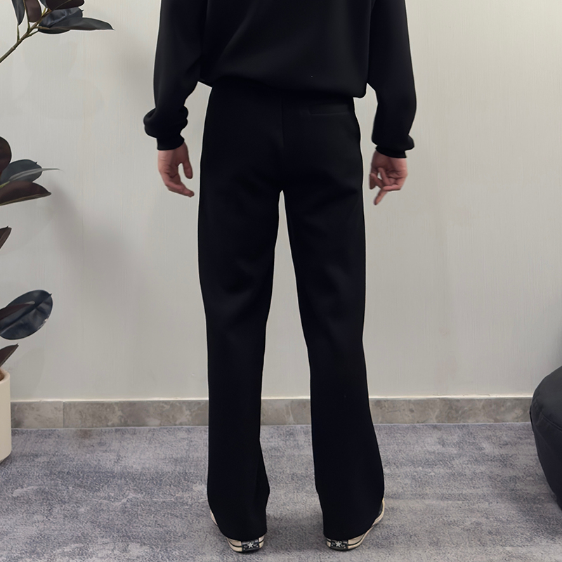弹力休闲喇叭西裤 修身 子女2025秋冬保暖高腰超模裤 黑色加绒微喇裤