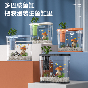 鱼缸生态缸客厅小型2025新款 桌面观赏塑料圆形一体成型仿玻璃防摔