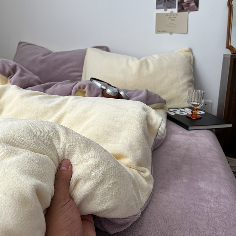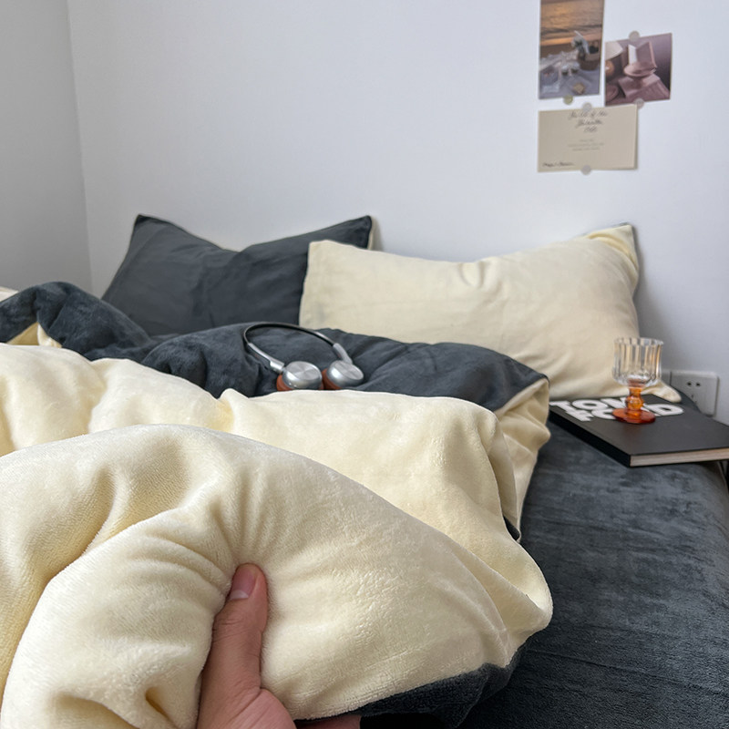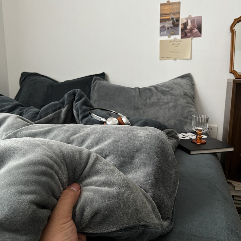 A类保暖牛奶绒四件套床上用品被罩床单加厚珊瑚绒被套三件套床笠4