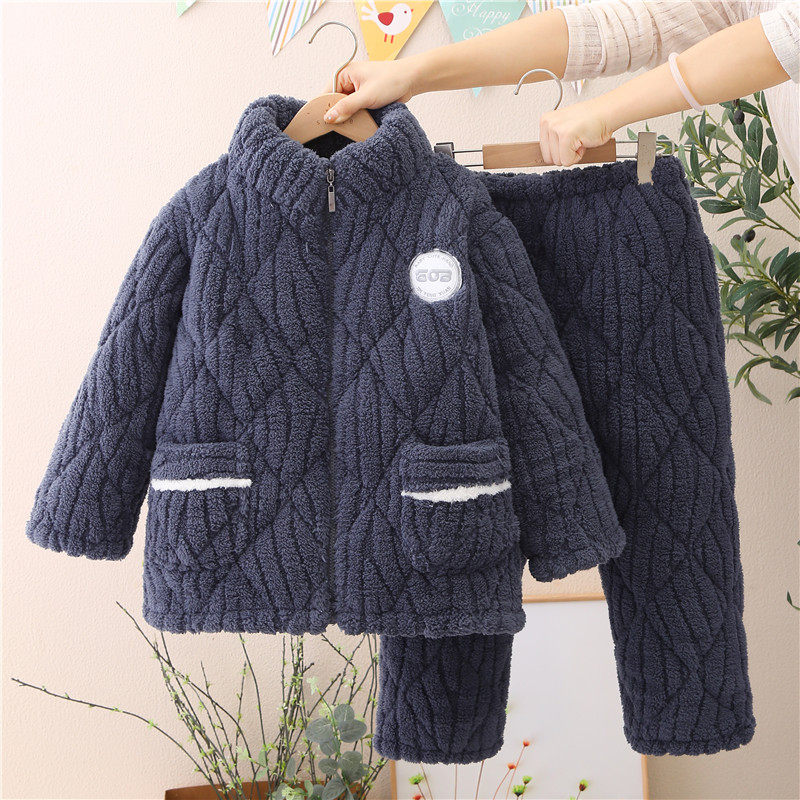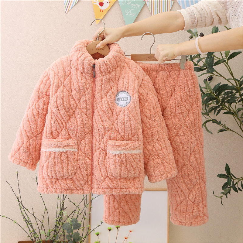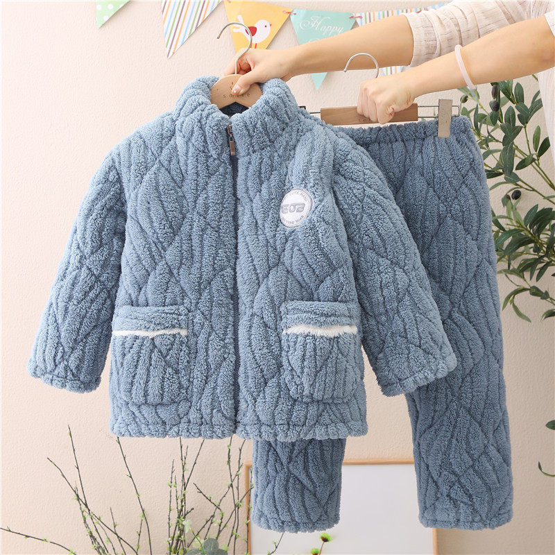 儿童睡衣三层夹棉冬季 加厚保暖中大童女孩公主风法兰绒女童家居服