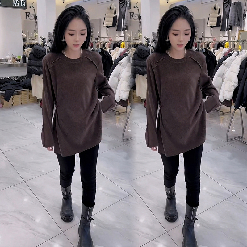 欧货美拉德风t恤女25冬季 洋气收腰显瘦设计感中长减龄显瘦打底衫