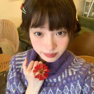 宽松打底针织衫 檀木紫 韩版 新款 软糯复古菱格高领套头毛衣女秋装