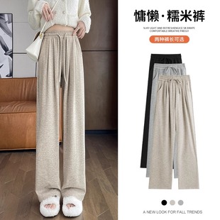 子 女秋冬加绒高腰遮垮显瘦直筒阔腿裤 300斤大码 胖mm深灰色糯米裤