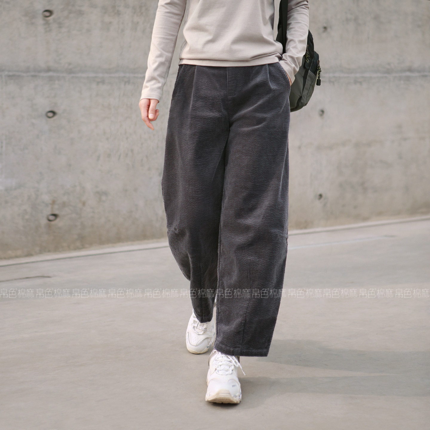休闲长裤 宽松大版 出口转内销新疆棉灯芯绒 女款 2026春秋条绒萝卜裤
