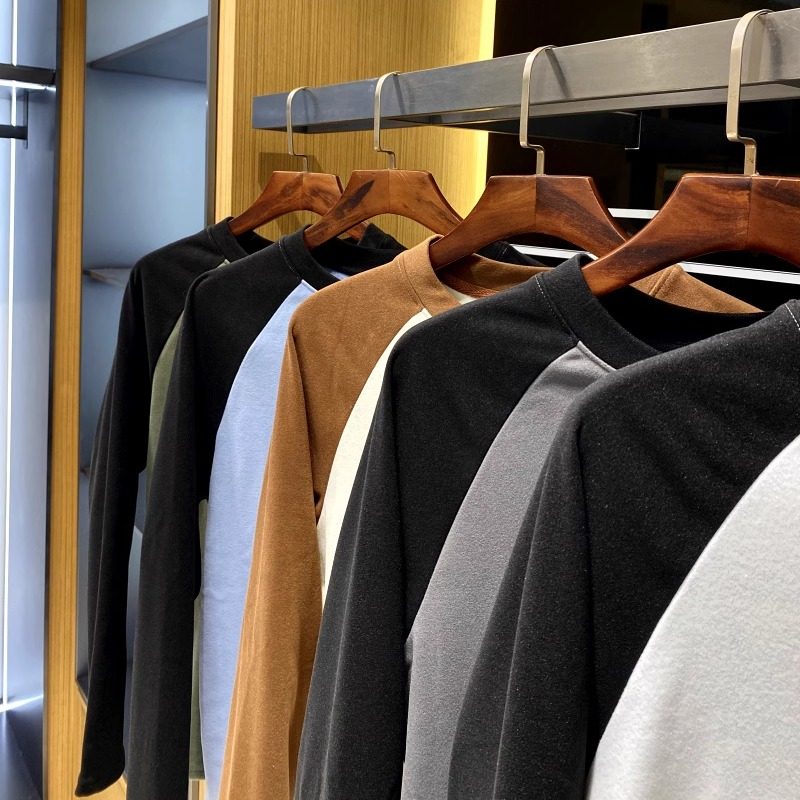 T恤男打底衫 秋冬撞色拼接保暖休闲长袖 双面德绒 港资设计师线