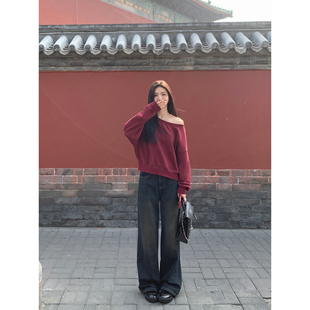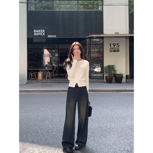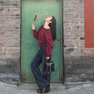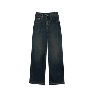 MULVAN深蓝色阔腿牛仔裤 女秋冬显瘦百搭高腰休闲宽松拖地直筒长裤