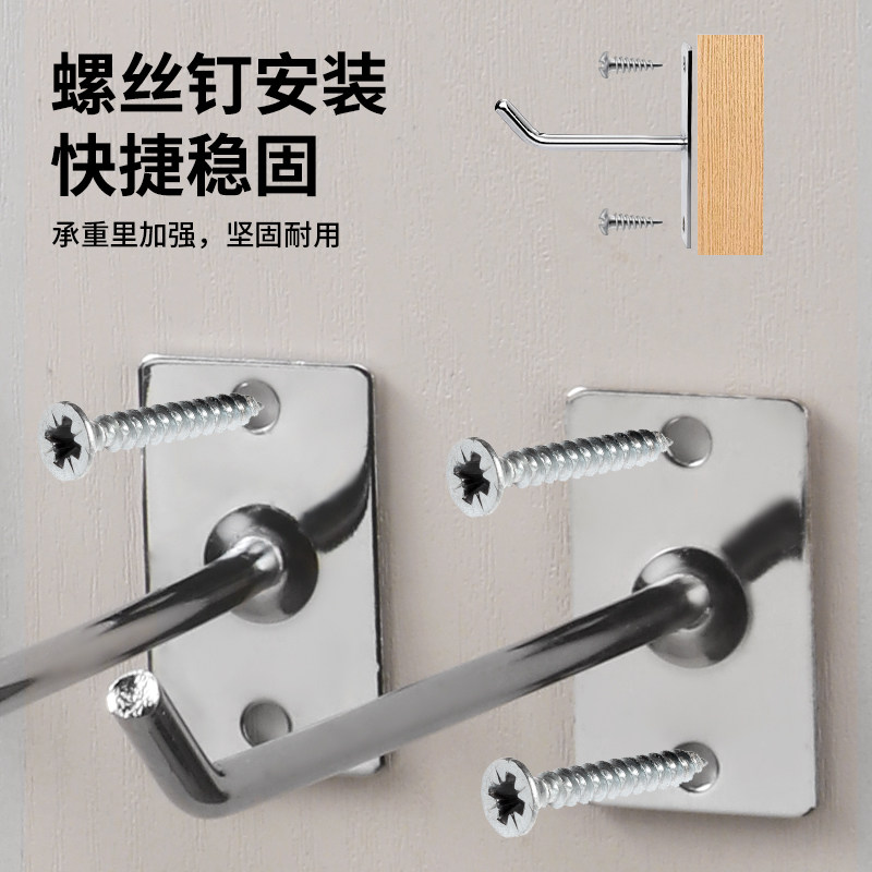 不锈钢连排挂钩厨房墙壁排钩浴室挂衣架可打孔强力承重304一排钩6