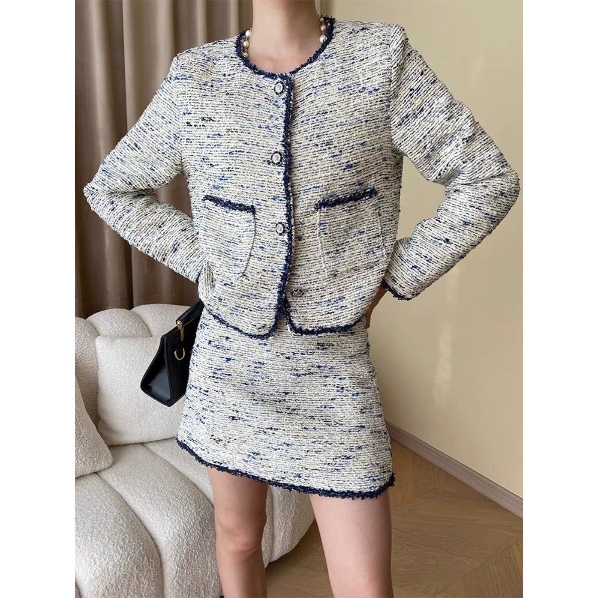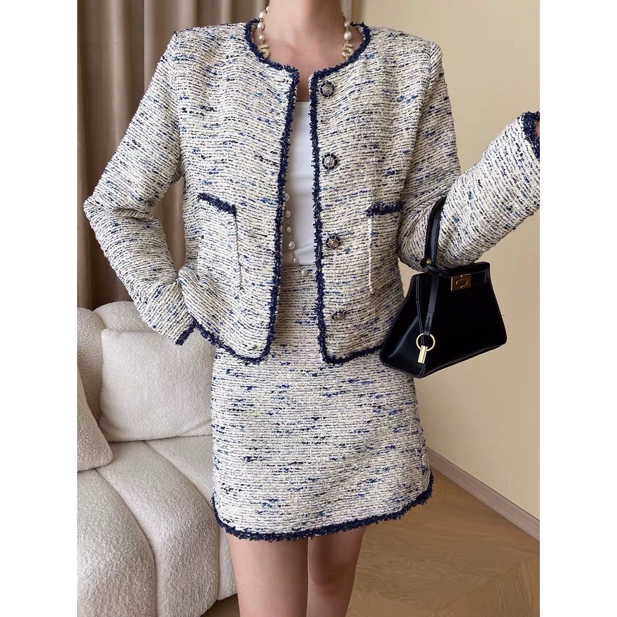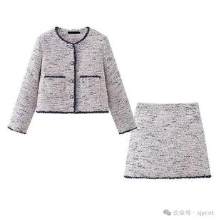 A字半身裙 圆领植绒飞纱精美上衣 两件套0.88 高端新款 小香风套装