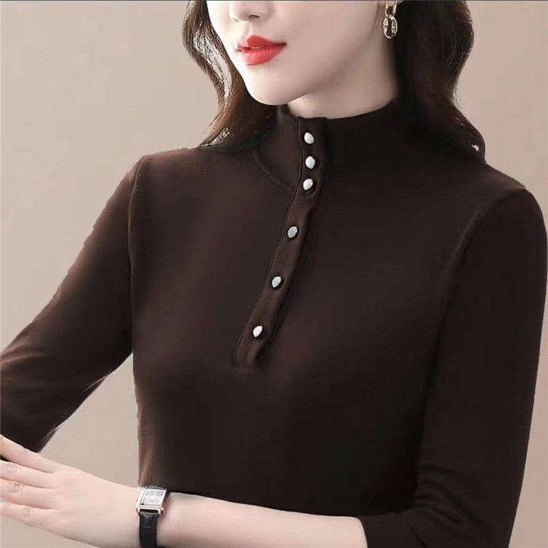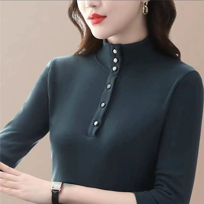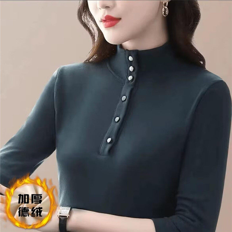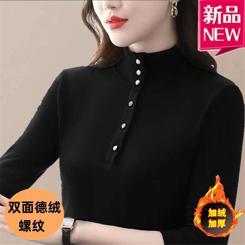 T恤上衣 秋冬内搭加厚洋气妈妈长袖 半高领德绒打底衫 女2024年新款