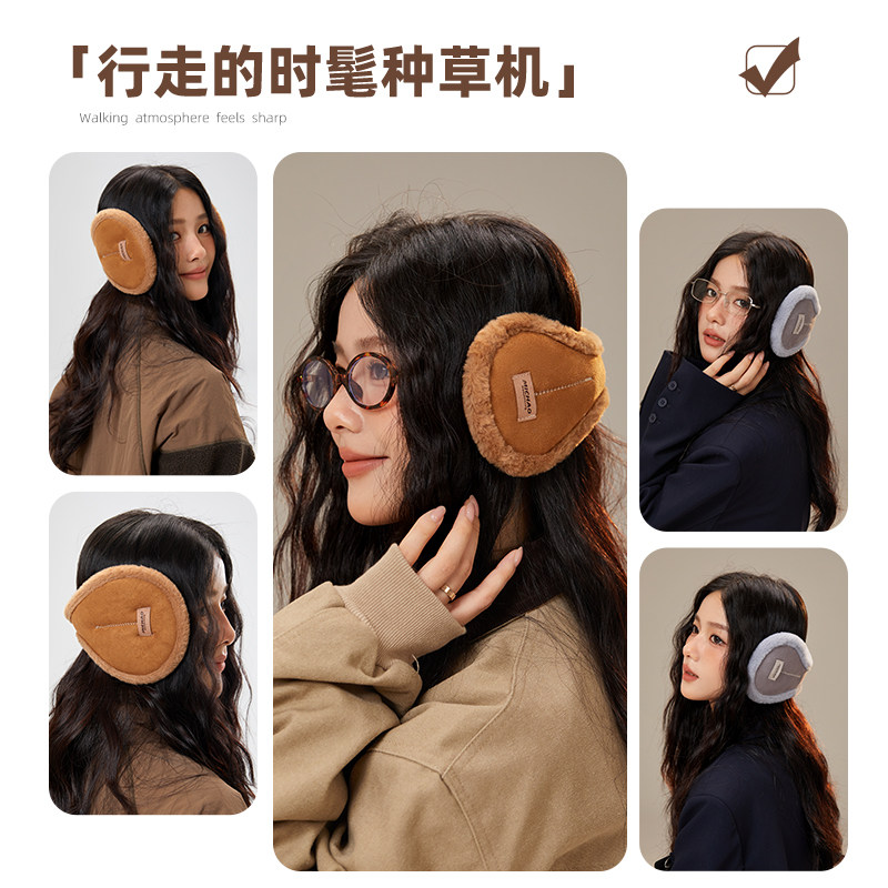 甜酷风y2k棕色仿貂毛耳罩毛绒冬季 雪景保暖耳包女骑行护耳套耳暖