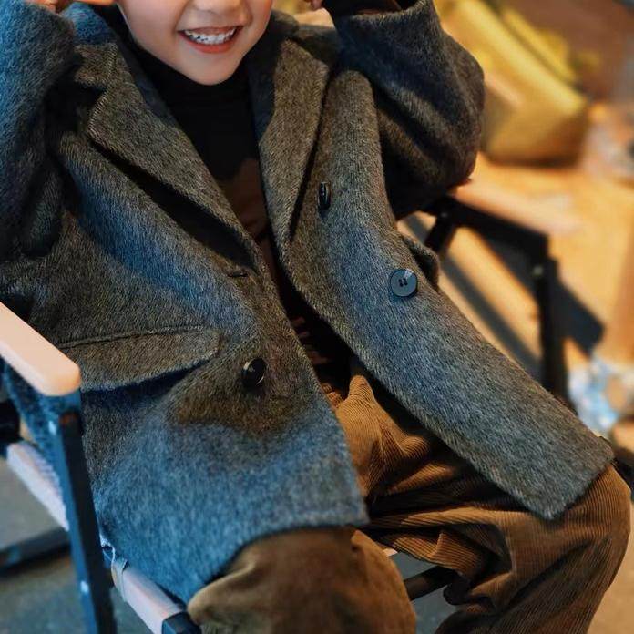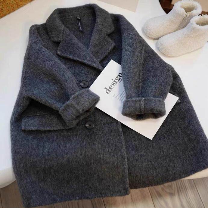 毛呢外套 jk原创日系学院风正肩牛角扣大衣加厚中长款 阿车家 大码