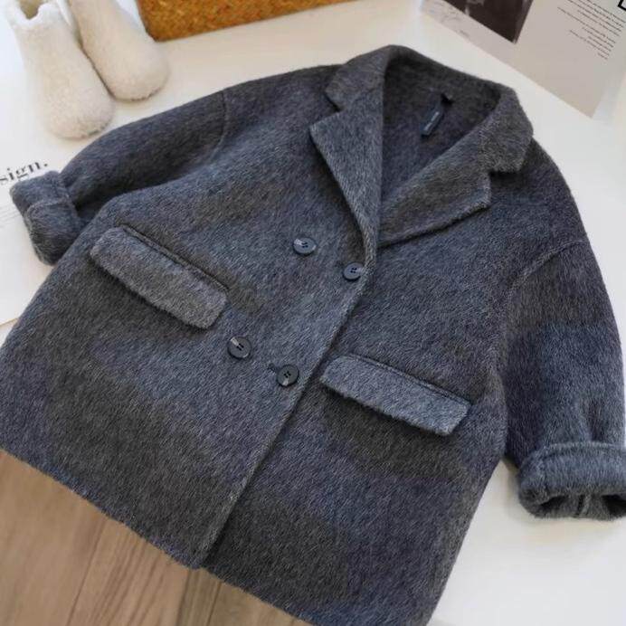 西装 过膝双面羊绒外套 领毛呢子风衣 中长款 纯羊毛双面呢大衣男士