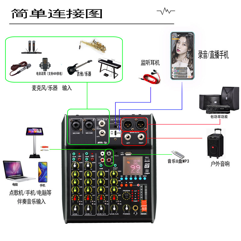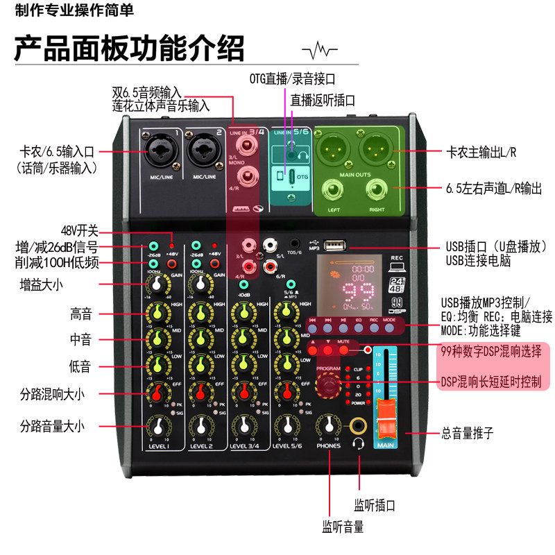 6代直播调音台蓝牙专业家用OTG小型调音台