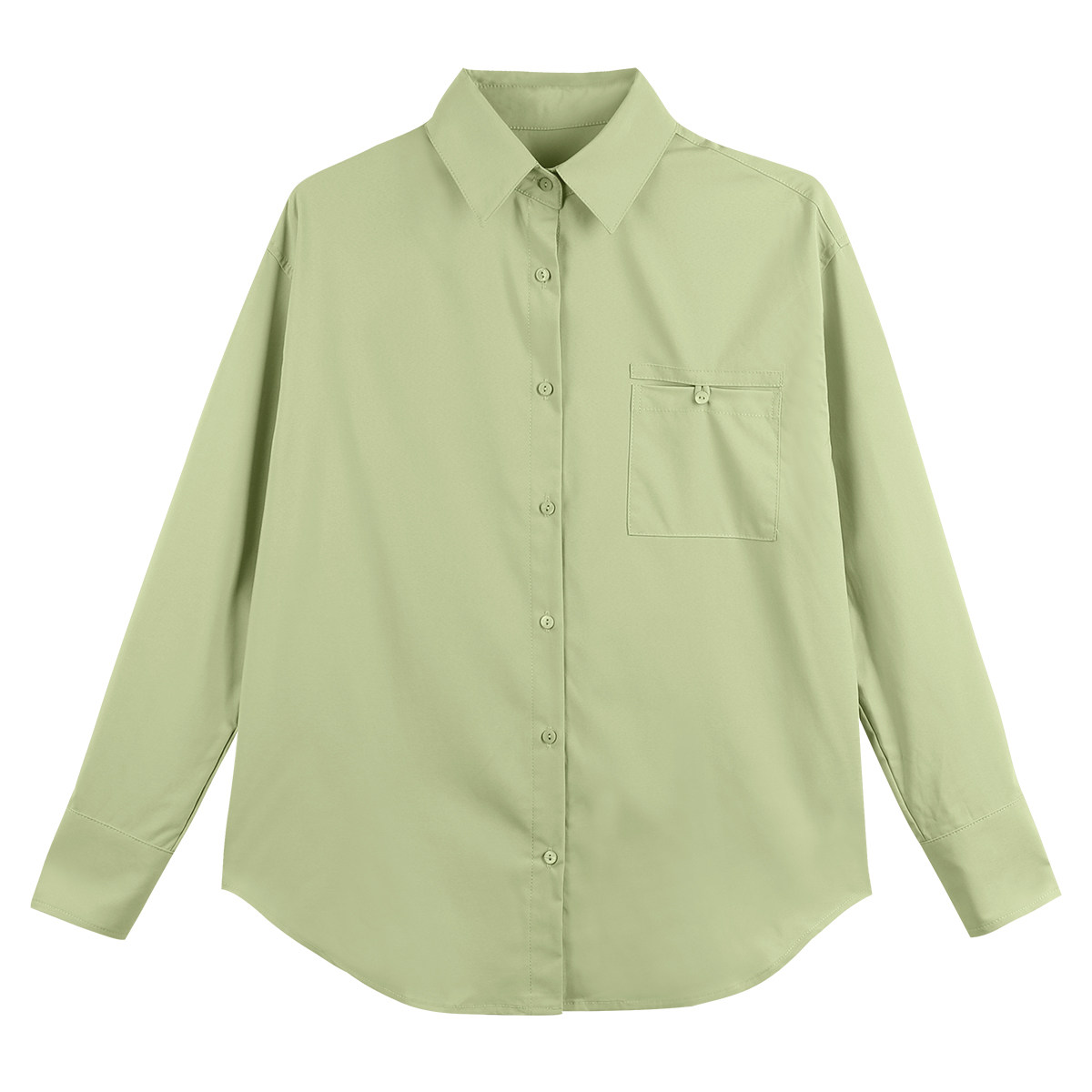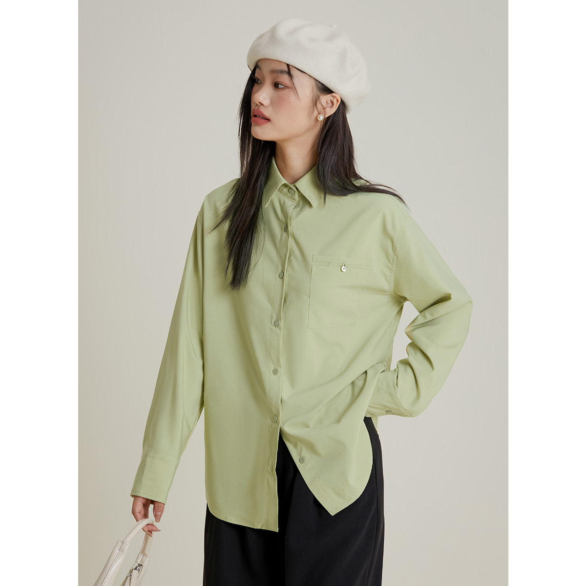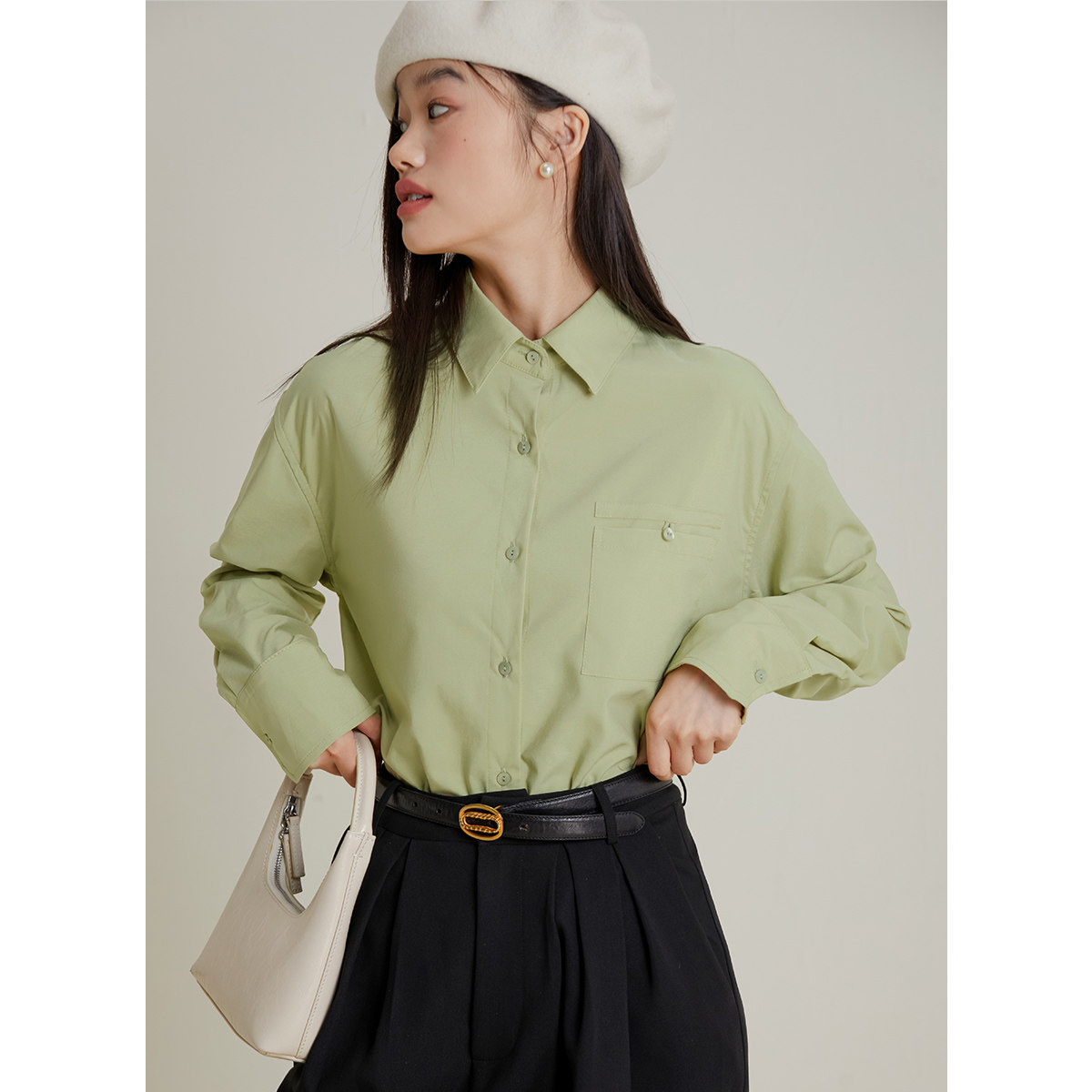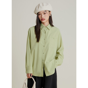 内搭设计感口袋衬衣宽松显瘦正肩上衣 女气质春季 弥古长袖 绿色衬衫