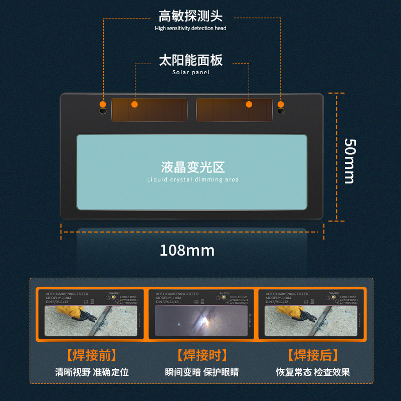 汉防可调自动电焊变光镜片太阳能液晶烧焊工面罩电焊帽氩弧焊接