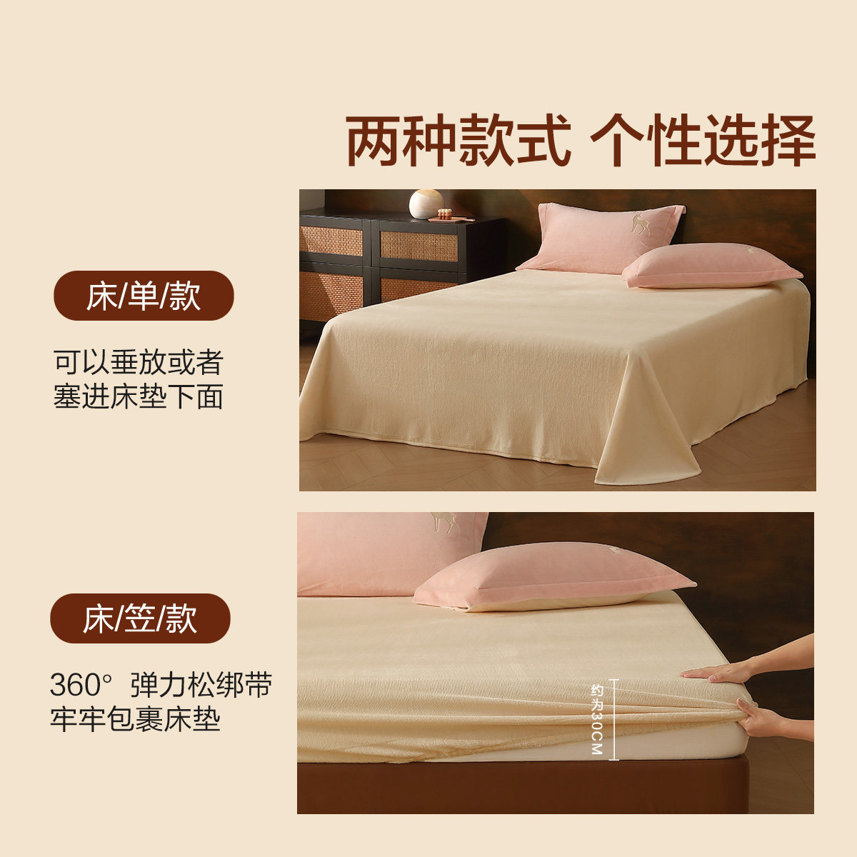 雅芳婷全棉四件套床笠款 小清新印花超柔纯棉抑菌多用被套床品套件