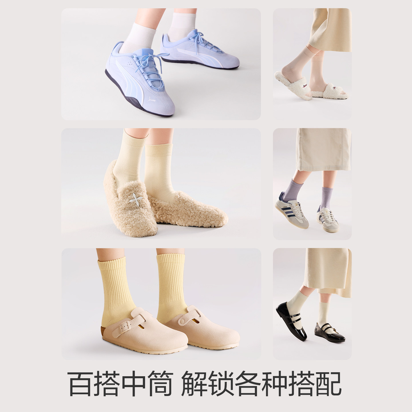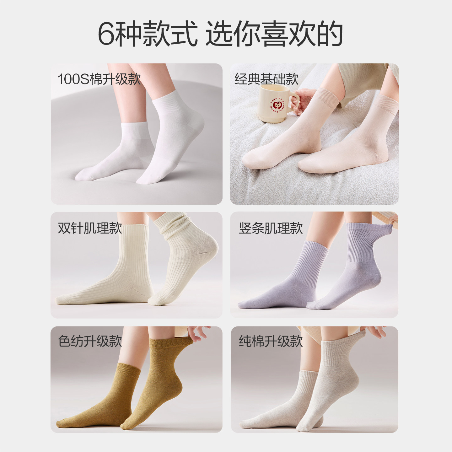 纯棉袜子女中筒袜月子无骨春秋款 精梳棉吸汗100%全棉色纺抗菌长袜